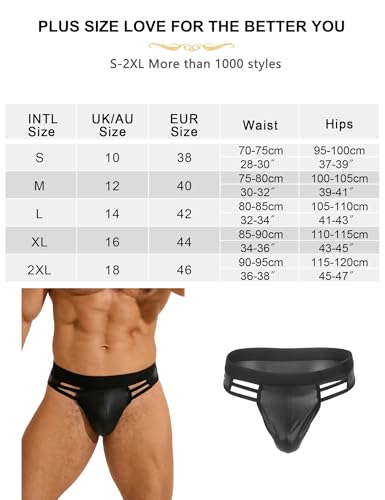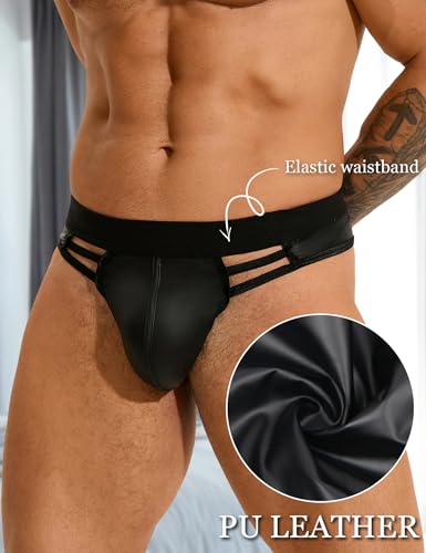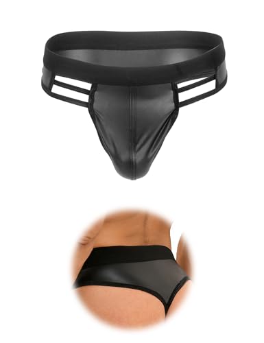 ohyeahlady PU Lederen Slip Heren Sexy String Tanga Mannen Sissy Slipje Bulge String Wetlook G-String Grote Maten Ondergoed Elasticiteit Onderbroek Pouch Underwear Heren Slips Clubwear Zwart, zwart, L