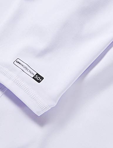 Lycra, korte mouwen, UPF 50, voor jongens van 8-16 jaar. De producteigenschappen zijn de volgende: gerecycled polyestermix, nauw aansluitende snit, beschermingsfactor UPF 50, chloorbestendig, vochtafvoerende eigenschappen en gerecycled garen.