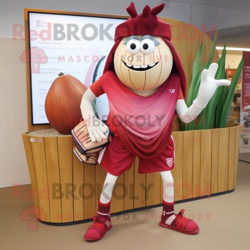 Be the first to review “REDBROKOLY Mascotte kostuum van rode ui gekleed met een boardshort en handtassen”