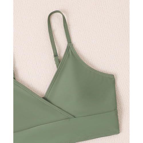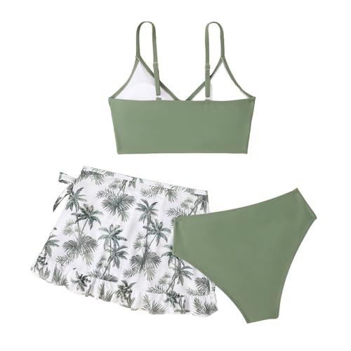 Rswnyirn 3-delig meisjes bikini tankini set badkleding bustier met slip rok badpak zomer badmode swimwear, groen, 146-152