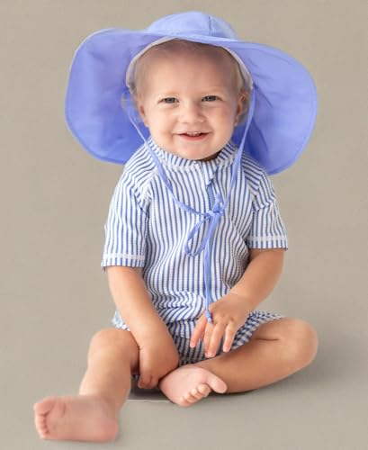 RuggedButts Baby/Peuter Jongens Gestreept Eendelig Badpak Rash Guard UPF 50+ Zonbescherming Romper, Maagdenpalm Blauwe Seersucker, 3-6 Maanden