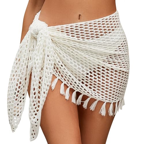 Haakrok met horizon franjes: deze wikkelrok is gemaakt met horizontale franjes om lichte drapering te creëren en een slouchy look te geven, doorzichtig, sexy, perfect voor zomer, zwembadfeest, strandvakantie.