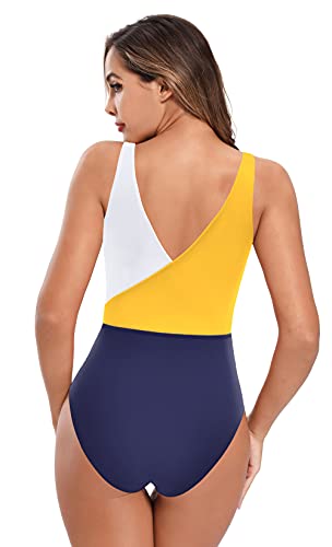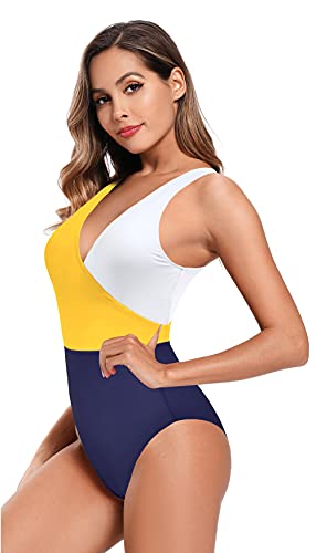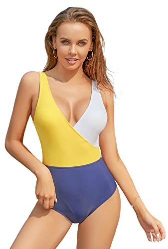 SHEKINI Dames Zwemkleding Uit één Stuk buikcontrole badmode V-hals Sportieve Chic Bkini Slank Elegant Eendelig Bikini…