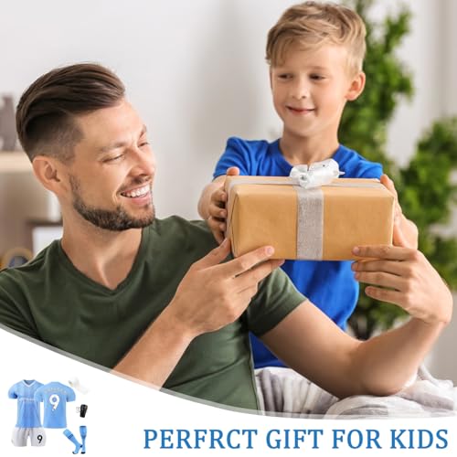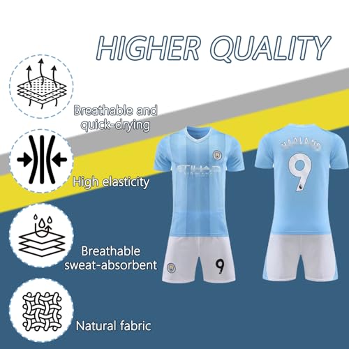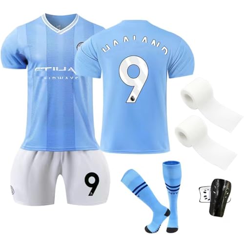 sinirttou Voetbalshirt set voor kinderen, nr. 7 en nr. 9, voetbaljersey, trainingspak voor jongens en heren, met voetbalshirt, shorts, steunen, scheenbeschermers en bevestigingsbanden, maat 22 – 28