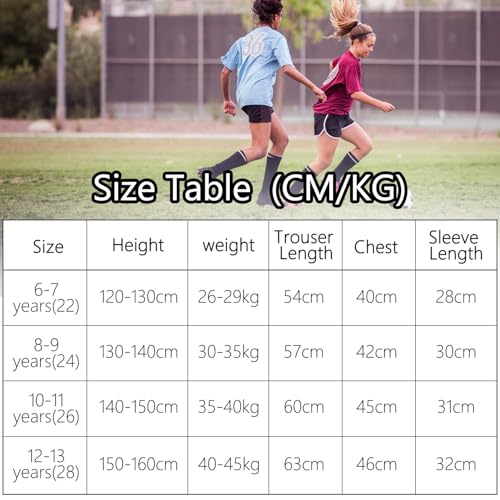 Kindershirtset: je ontvangt 1 shirt, 1 short, 2 bevestigingsbanden, 1 paar voetbalsokken, 1 paar voetbalbeschermingsuitrusting, geschikt als voetbalshirt trainingskleding.