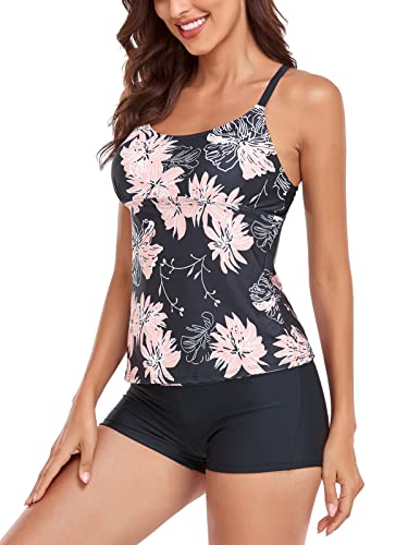 Sixyotie dameszwemkleding, tankini-set met kleurverloop, top met korte broek, sportief badpak met lage taille, bikini