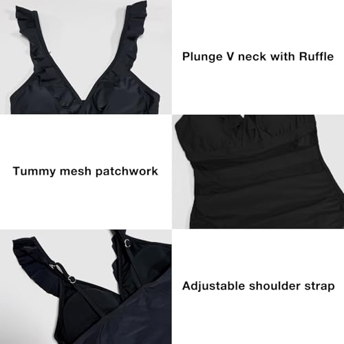 Ontwerp: het eendelige damesbadpak met ruches heeft een diepe V-hals, afneembare vulling, verstelbare bandjes en mouwen met ruches.