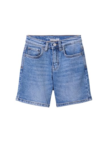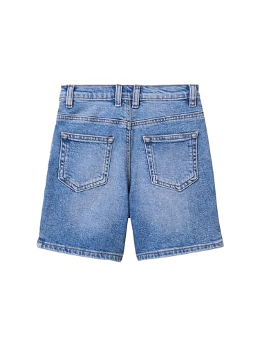 Klassieke, korte jeansbroek in 5-pocket-stijl met verstelbaar elastiek en riemlussen aan de tailleband.