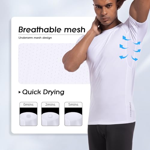 GRADED COMPRESSION DESIGN: Dit compressie-T-shirt voor heren is gemaakt van een zeer elastische stof die de juiste hoeveelheid compressie biedt om spieren te stabiliseren, spierpijn te verminderen, de prestaties te verbeteren en de conditie tijdens trainingen te verbeteren.