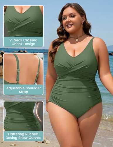 Eendelig badpak: met een sexy V-hals en geplooid borstontwerp is het modieus en mooi. De verstelbare schouderbanden passen bij verschillende lichaamstypes en de cup heeft een afneembaar borstkussen.