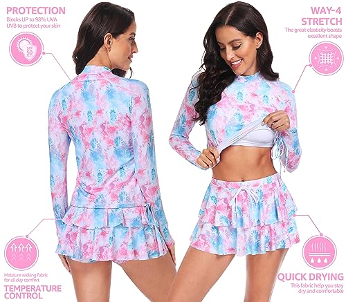 Zonnescherm surfshirt: UNIQUEBELLA Rash Guards zijn zonwering, UPF50+ blokkeren 99% van de schadelijke zonnestralen. Gemaakt van sneldrogend materiaal dat je lichaamstemperatuur constant houdt en fris en schoon blijft. Het lange zwemshirt beschermt je perfect tegen steken en krassen. Zacht en comfortabel voor vele activiteiten zoals surfen, duiken, kajakken, snorkelen, yoga en workout.
