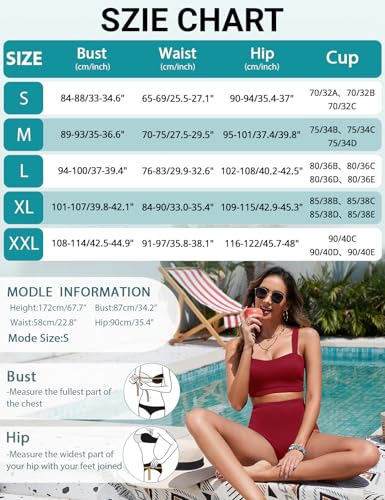 Tweedelige zwempakken: push-up sportbikinitop, afneembare zachte borstvulling, comfortabeler om te dragen en zorgt voor een perfecte pasvorm. Brede schouderbanden kunnen de belasting van de schouders verminderen en geen sporen achterlaten. Het dragen van een bandeau top, geniet van eeuwige elegantie en maximaal comfort.