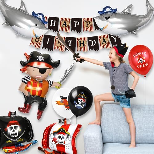 Premium kwaliteit: onze piratendecoratie voor kinderen is gemaakt van hoogwaardige aluminiumfolie met heldere opdruk en is duurzaam, als je feest voorbij is, laat je de lucht met het rietje eruit en de ballonnen kunnen tot je volgende verjaardag worden bewaard.