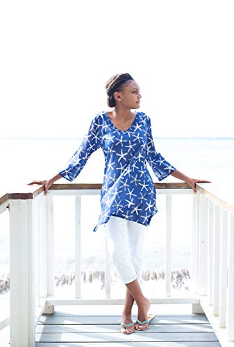 Stijlvol en elegant: dit gemakkelijk te dragen ontwerp in optimale lengte met hals en ¾ mouwen geeft alle vrouwen in verschillende vormen en maten. De brede mouwen maken het zeer aangenaam om te dragen in warme klimaatzones. Het frisse Caribische kleurenpalet van Kim en tropische prints geven elke huidtint.