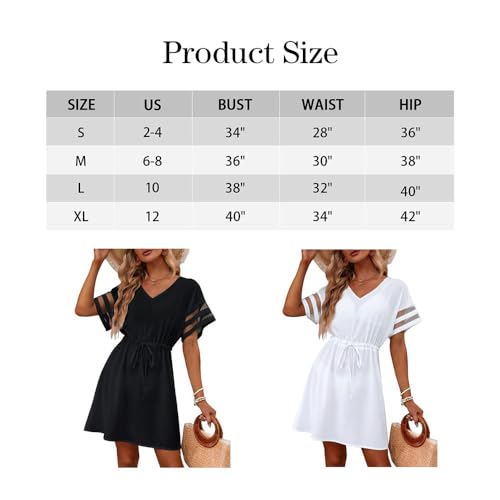 Uniek design: korte jurk met V-hals, mouwloze strandjurk, geen voering, losse pasvorm. Elegant en mooi. Twee zijzakken bieden ruimte voor mobiele telefoon, sleutels en kaarten. Het is een jurk die je gemakkelijk van strand tot diner kunt dragen.