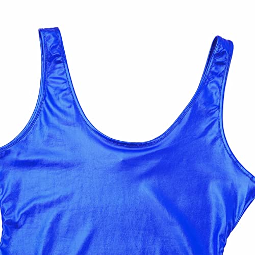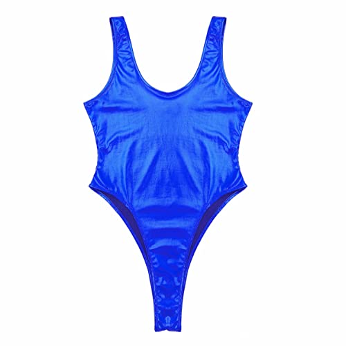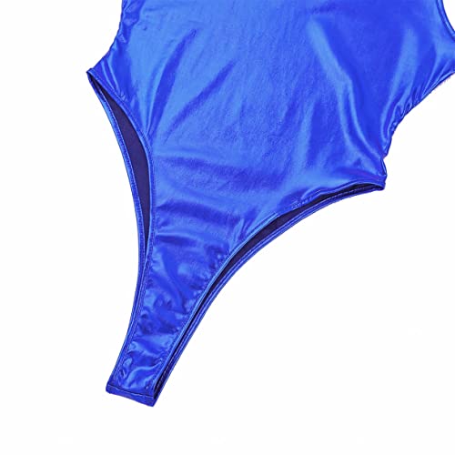 YiZYiF Dames glanzende metallic bikini string body high cut sexy glanzend badpak zwempak monokini, blauw, S