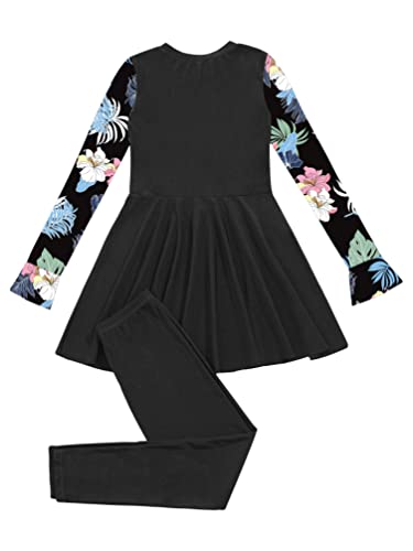 Lange mouwen beschermen meisjesarmen tegen zonnebrand. De bloemenprint laat meisjes er energiek uitzien. Badjurk voor kinderen, die met broeken past, zorgt ervoor dat meisjes mooi en comfortabel zijn