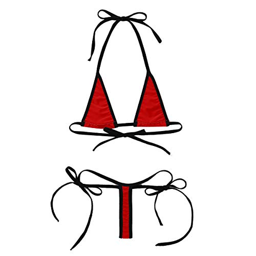 YOOJIA Mini-bikini voor dames, sexy, micro-bikini, 2-delig, dames, sling-shot, string, Braziliaanse bikini, beha en G-string, dames, micro-mini-bikini voor strand, zwembad, vakantie, Rood, One Size