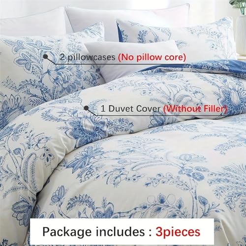 ELEGANT FLORAL DESIGN – This duvet cover set features a charming floral design with a mix of blue botanical floral on a soft white background. The intricate pattern creates a lively, nature-inspired atmosphere.
