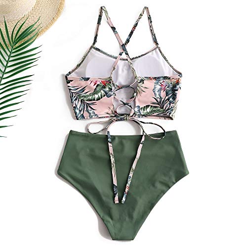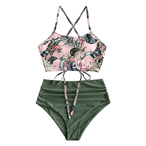 ZAFUL Dames Sexy Zonnebloem Print Kant Cross Hoge snit Bikini Set Badpak