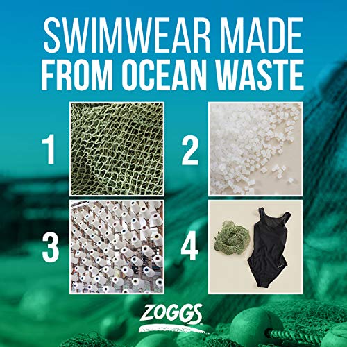 Dit tweedelige badpak maakt deel uit van het duurzame productprogramma van Zoggs en gebruikt gerecyclede materialen die uit de oceaan zijn teruggewonnen om het milieu te beschermen voor toekomstige generaties