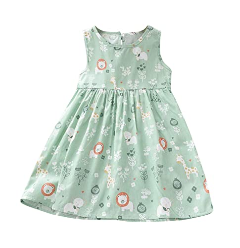 Zomerjurk voor meisjes, casual, prinsessenjurk, mouwloos, bloemenprint, katoen, strandjurk, meisjes, ballet, groen, 4-5 Jaren