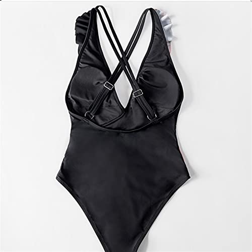Zwart Bloemen Patchwork Ruches Eendelig Badpak Sexy Diepe V-hals Vrouwen Meisjes Strand Badpakken Badmode Strand (Kleur: Multi Color, Maat: M.)