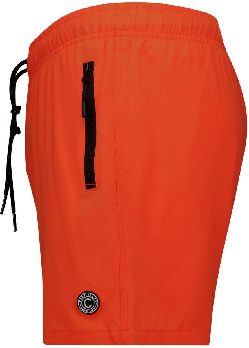 Kies deze zwembroek als je een eenvoudige jongenszwembroek zoekt met een verstelbare taille en ritszakken. De oranje kleur valt op, wat sommige jongens leuk vinden, maar niet iedereen draagt graag zo'n felle kleur. Let er wel op dat er geen materiaalinformatie in de bron staat, dus controleer het label als je daar waarde aan hecht.