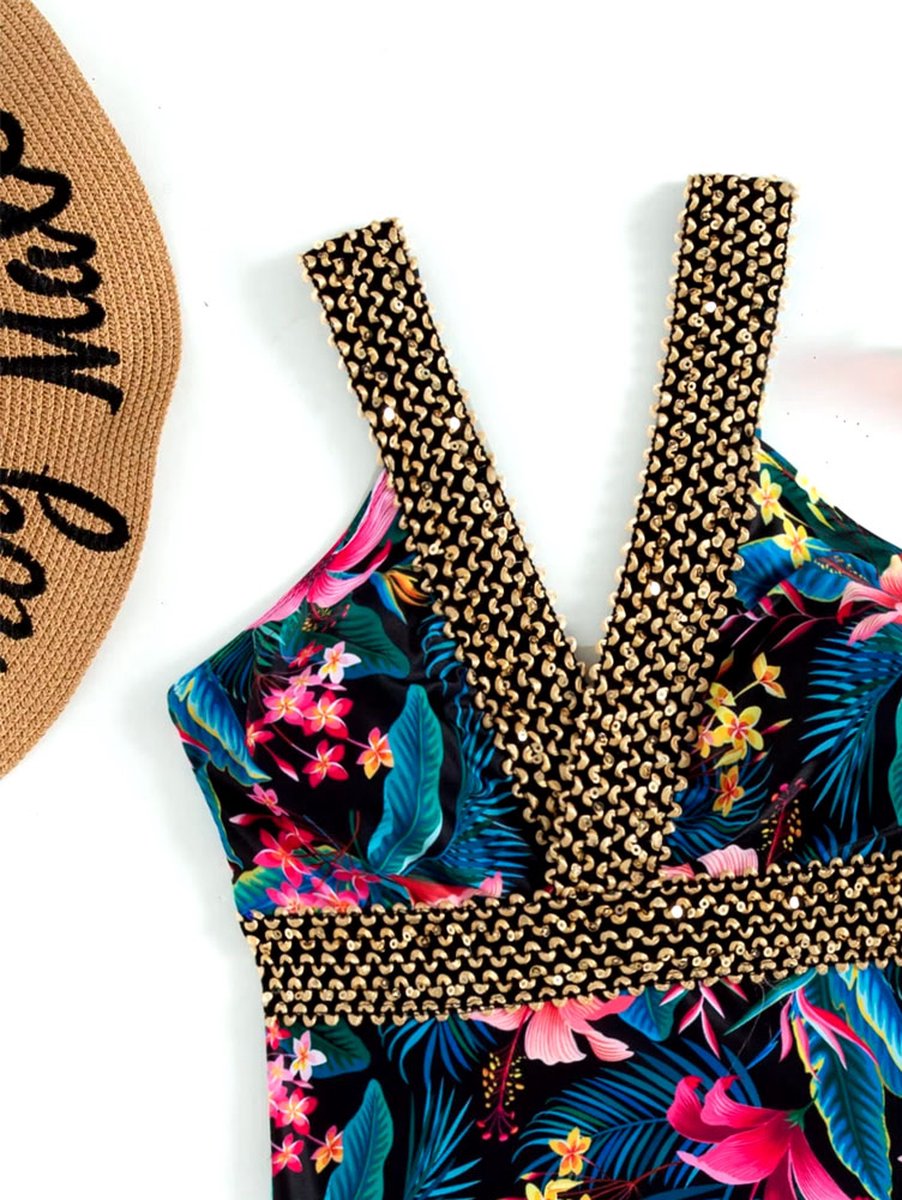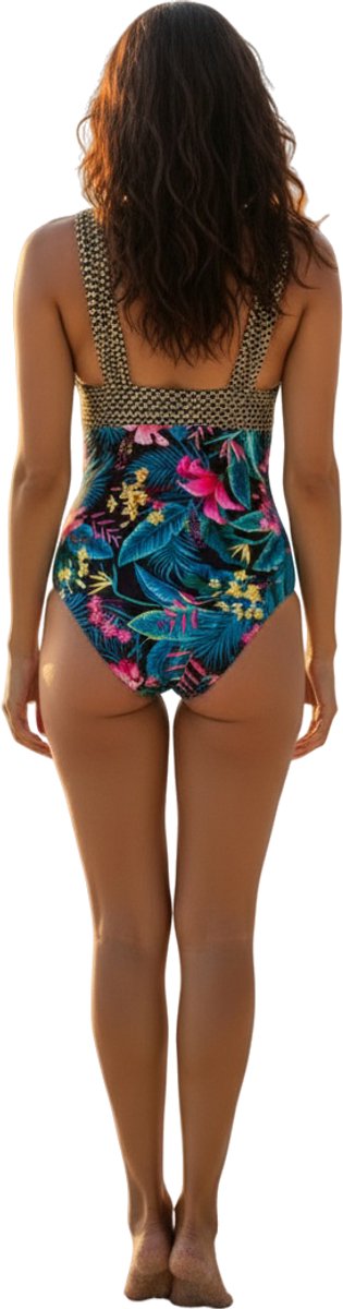 - Tropische printDe bloemenprint geeft het badpak een vrolijke en opvallende uitstraling.