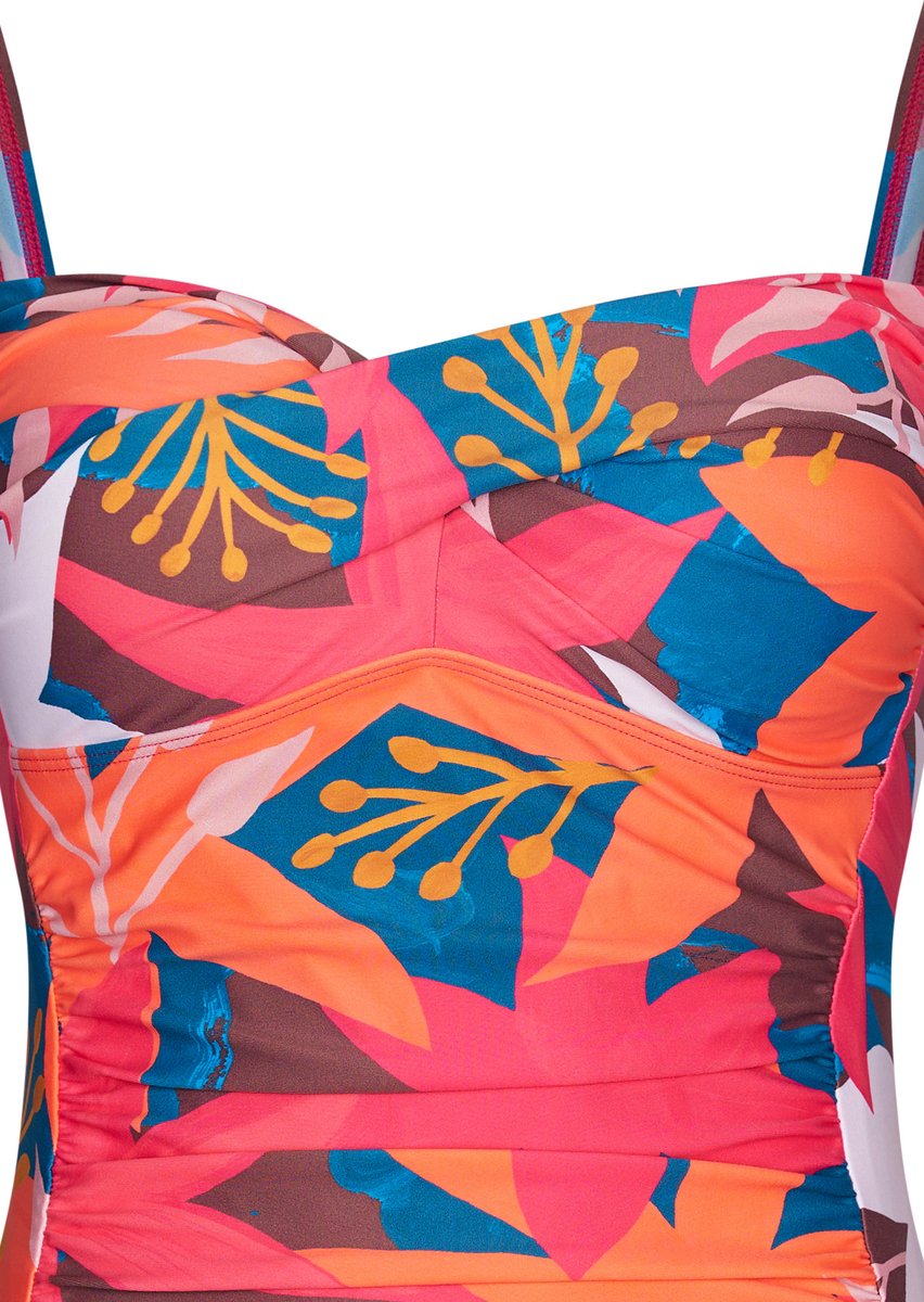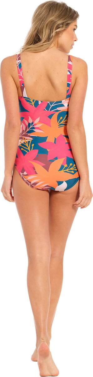 - Opvallende printDe blauwe basis met grote bladeren in ecru, roze, oranje en bruin geeft het badpak een vrouwelijke uitstraling.