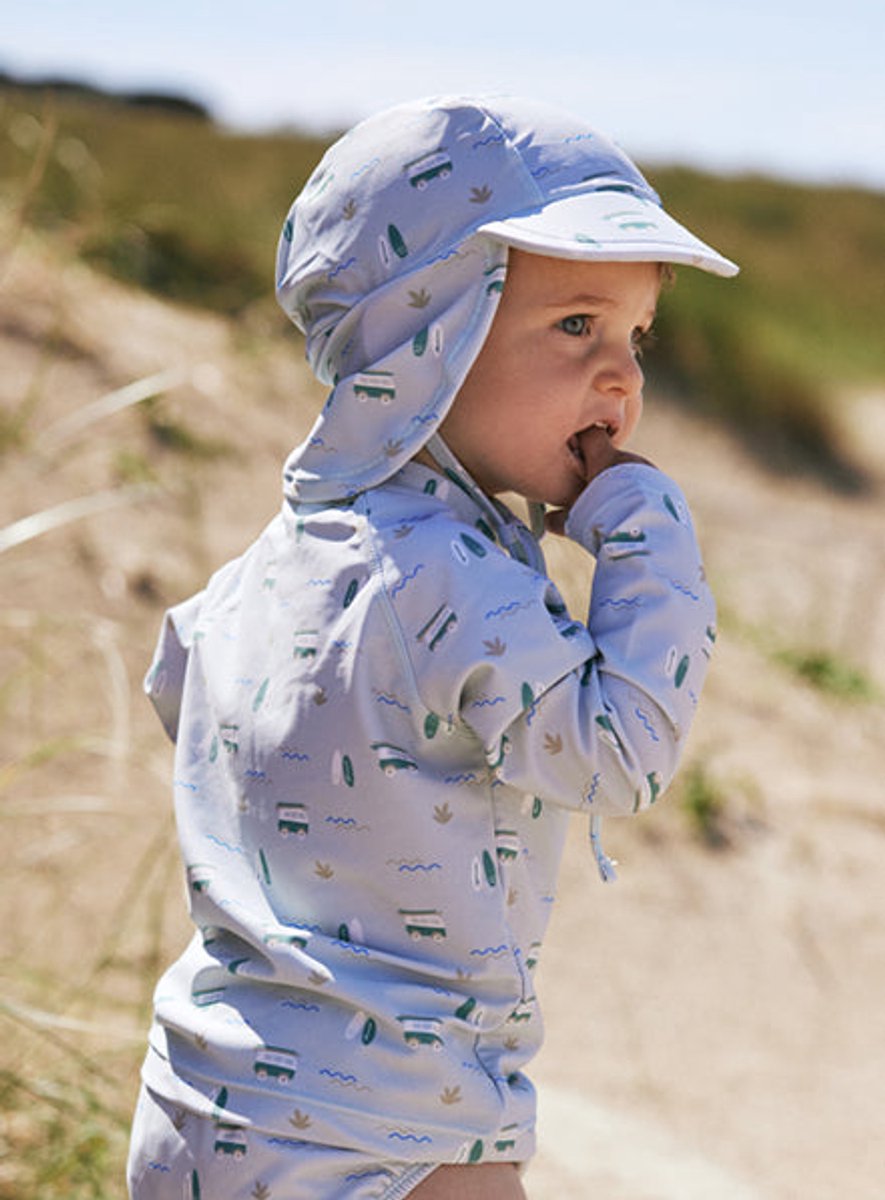 - UPF 50 beschermingDe stof helpt de huid beter te beschermen tegen zonnestralen tijdens het zwemmen en spelen.