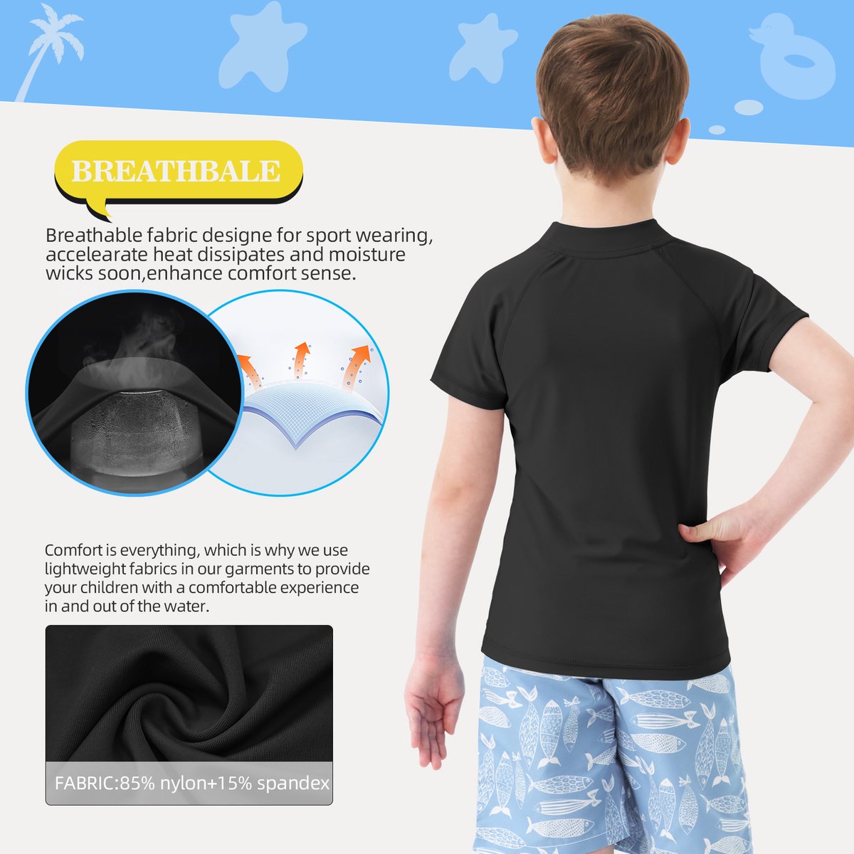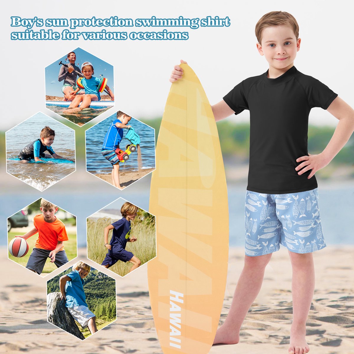 Dit zwemshirt is bedoeld voor jongens die extra bescherming zoeken tijdens zwemmen, surfen of spelen op het strand. Door de korte mouwen en aansluitende pasvorm is het ook geschikt voor sportieve wateractiviteiten.