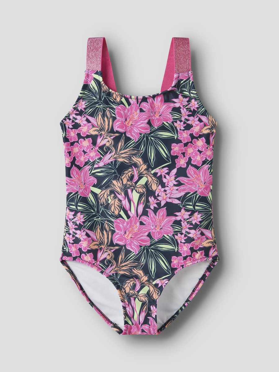 Dit badpak is gemaakt voor meisjes die willen zwemmen of spelen bij warm weer. Het model heeft een print over het hele oppervlak en een klein glitterdetail voor een opvallende look.