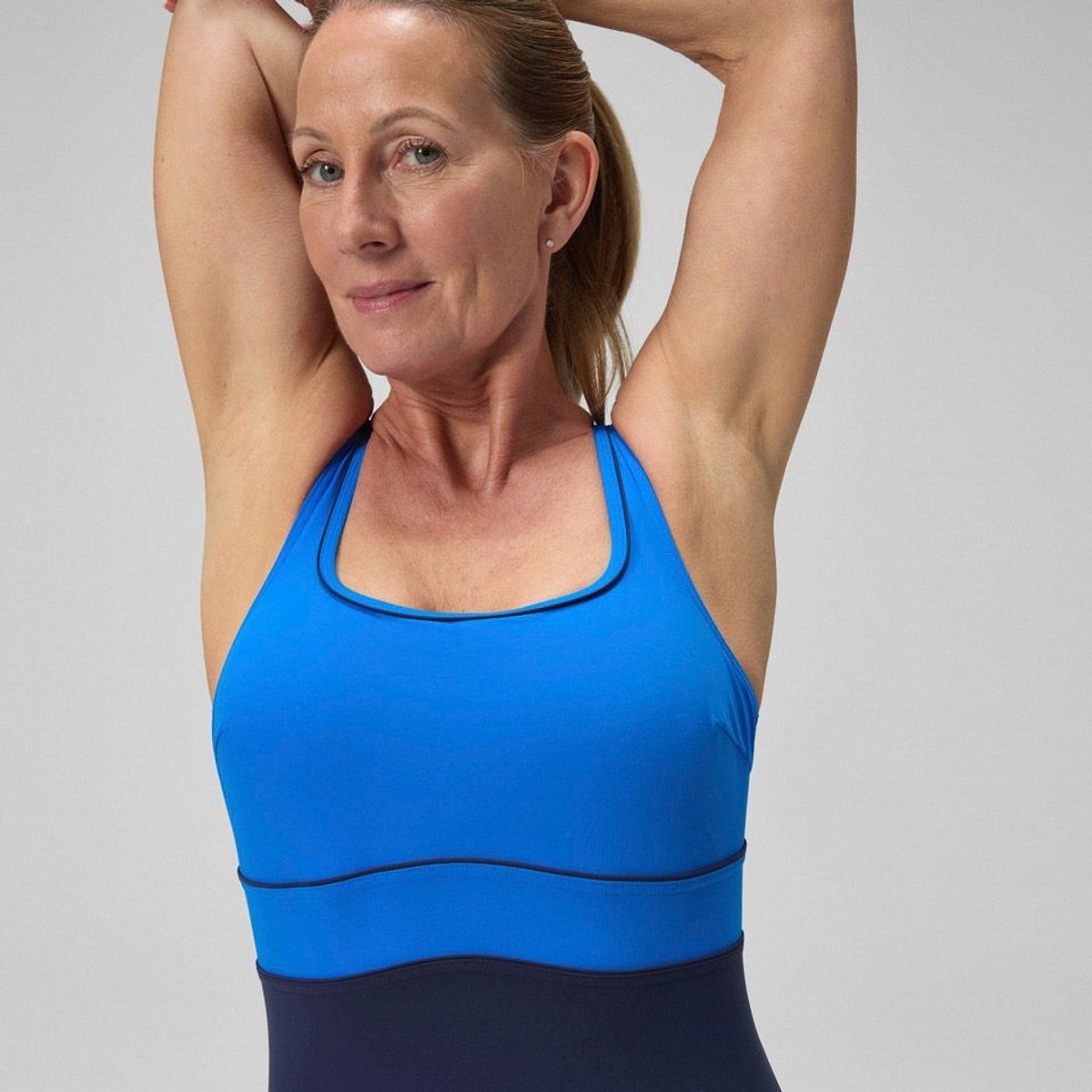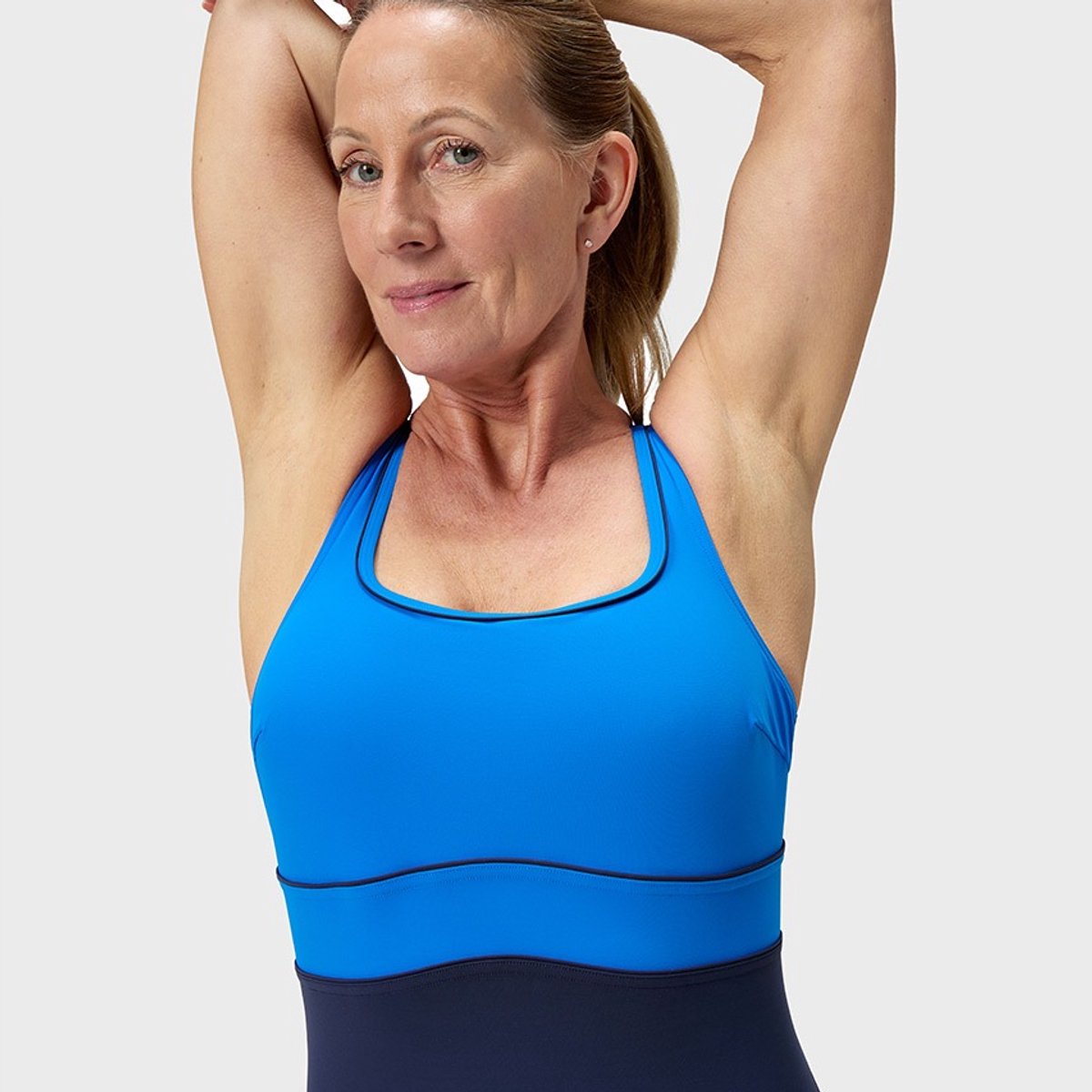 - Nauwsluitende pasvormHet badpak sluit strak aan en geeft een sportief, gestroomlijnd gevoel in het water.