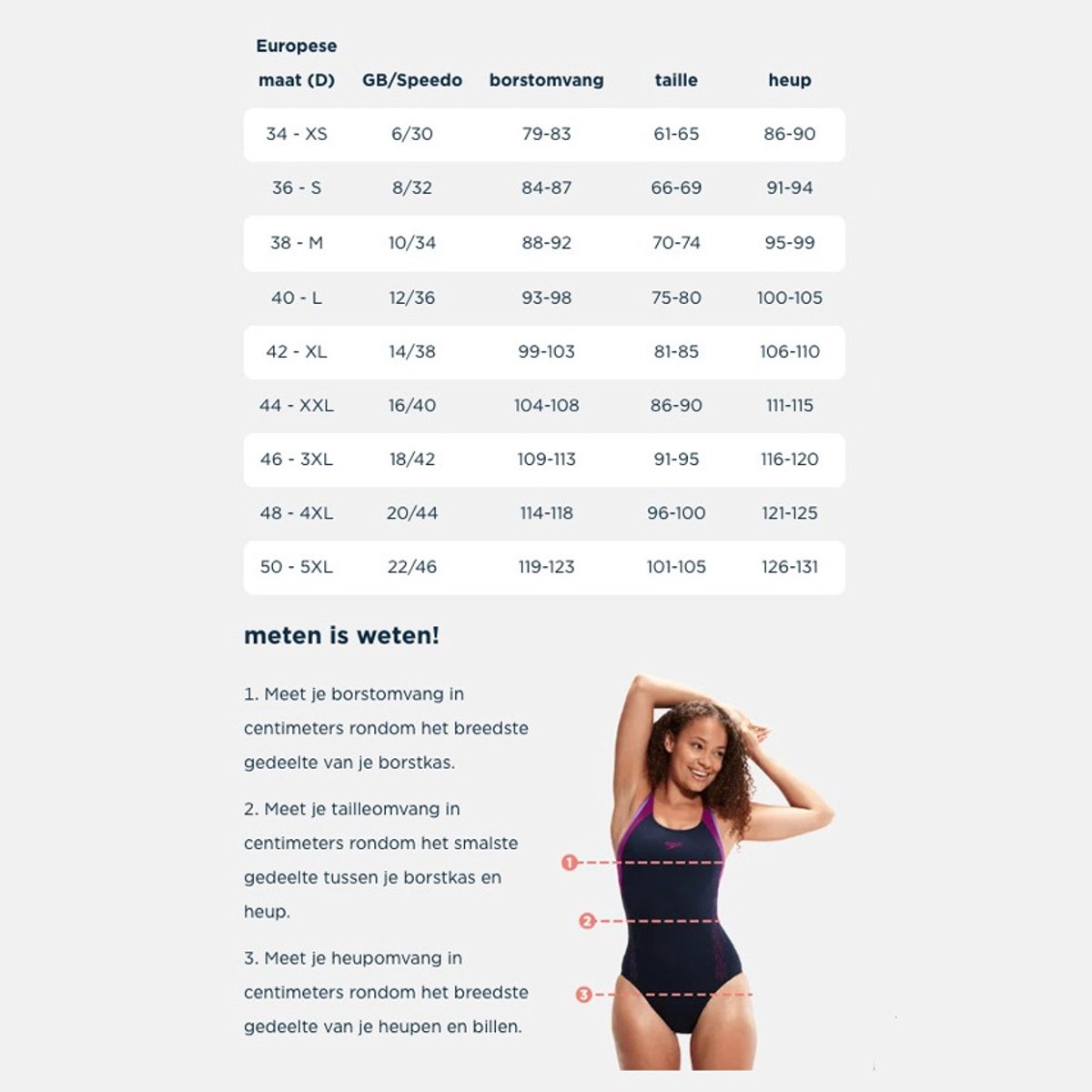 Kies dit model als je een sportief badpak zoekt dat goed aansluit en geschikt is voor regelmatig zwembadgebruik. Houd wel rekening met de strakke pasvorm: Speedo valt volgens de productinformatie vaak eerst wat klein en kan na enkele zwembeurten iets ruimer gaan zitten. Twijfel je tussen twee maten, dan kan groter kiezen verstandig zijn.